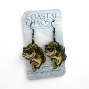 Fishing Earrings – Handmade Bass Camo Fish Acrylic Dangle Earrings for Women